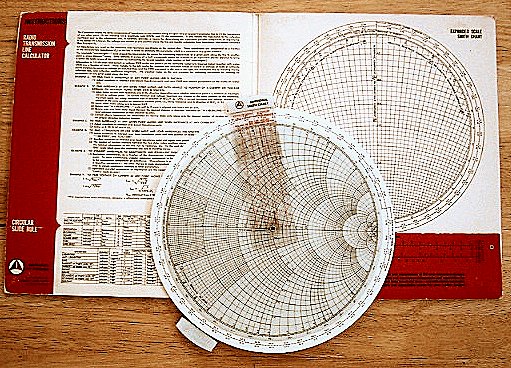 Amphenol Smith Chart and Circular Slide Rule - A wonderful find! One side is a Smith Chart; the other side is a (high resolution) circular slide rule. Complete with instruction folder to hold the rule. (Sold)