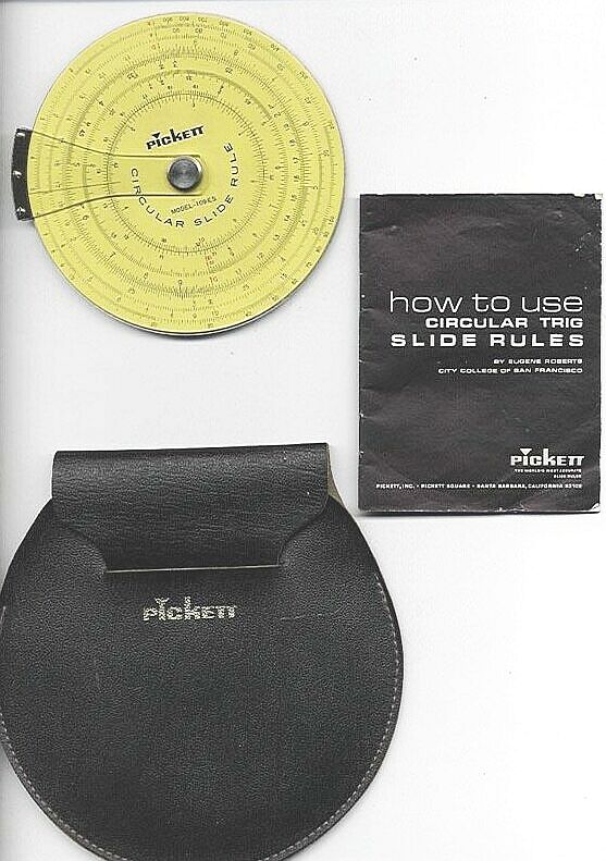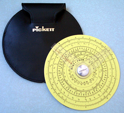 Pickett 101-C Circular Slide Rule. Scales are (obverse) C, CI, A, Af, L, F', LL2, LL1, DS, DT, M, (reverse) C, S, ST, T, Decimal Equivalents. The 101C has three independent cursors. (This item is not for sale).