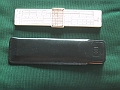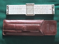 K+E Pocket Deci Lon (68 1130), with leather case. (Note: the apparent curvature of rule in the photo is an artifact of the camera lens. The rule is perfectly straight!) $375.